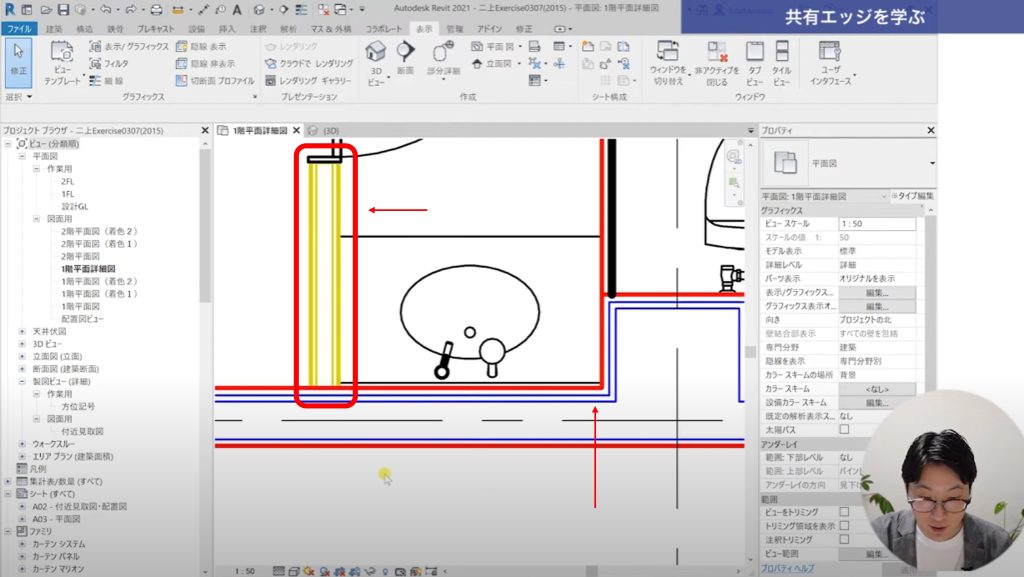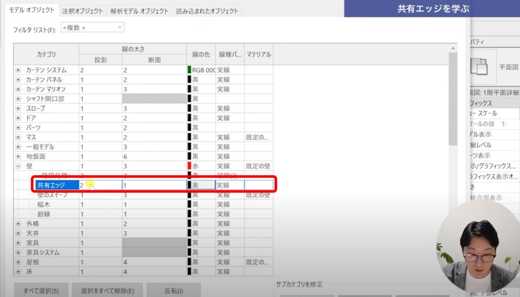各レイヤー、構造や仕上げの中の線のことを共有エッジと言います。